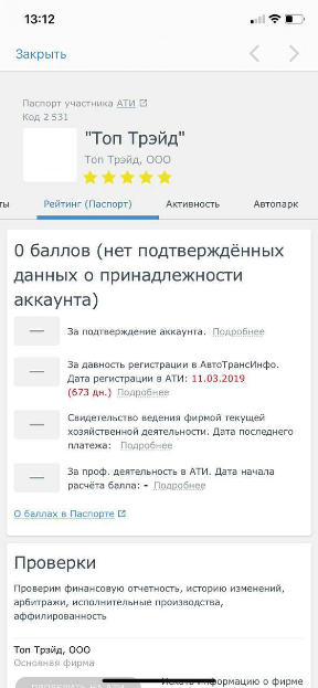 С желтыми звездами могут спокойно работать фирмы, у которых уже есть постоянные партнеры. Таким фирмам уже доверяют, и им не нужно что-то доказывать. Но чаще всего желтые баллы есть у фирм, которые только что зарегистрировались. Остальные участники понимают, что ATI.SU пока не проверил эту фирму, и опасаются с ней работать. Таким фирмам нужно подтвердить данные, чтобы получить первый зеленый балл «Аккаунт подтвержден».