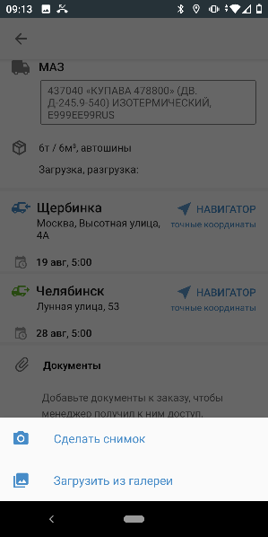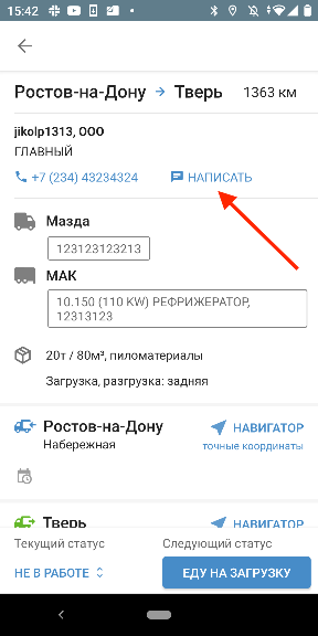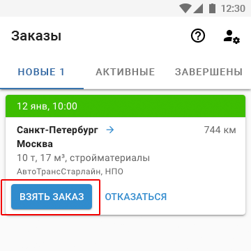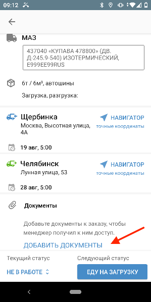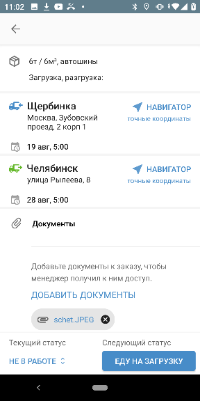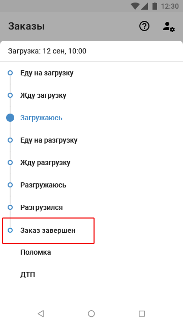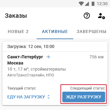 Когда начнете работу по заказу — меняйте статусы перевозки. Приложение напомнит вам, если вы забудете это сделать.