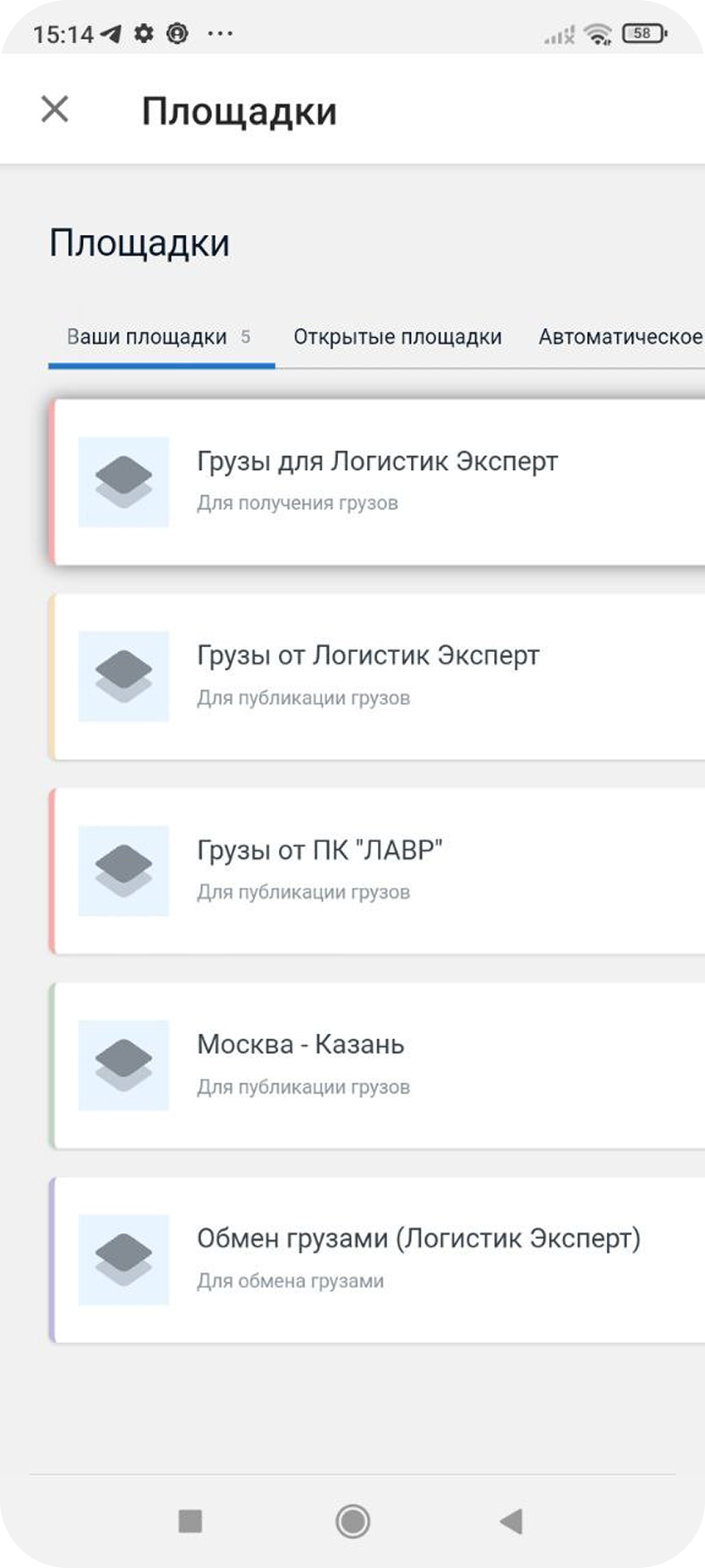 • Вы получите доступ к эксклюзивным грузам. Грузовладельцы размещают на площадках грузы, которых нет на Бирже ATI.SU. Чтобы найти новые площадки, перейдите на вкладку «Открытые площадки».