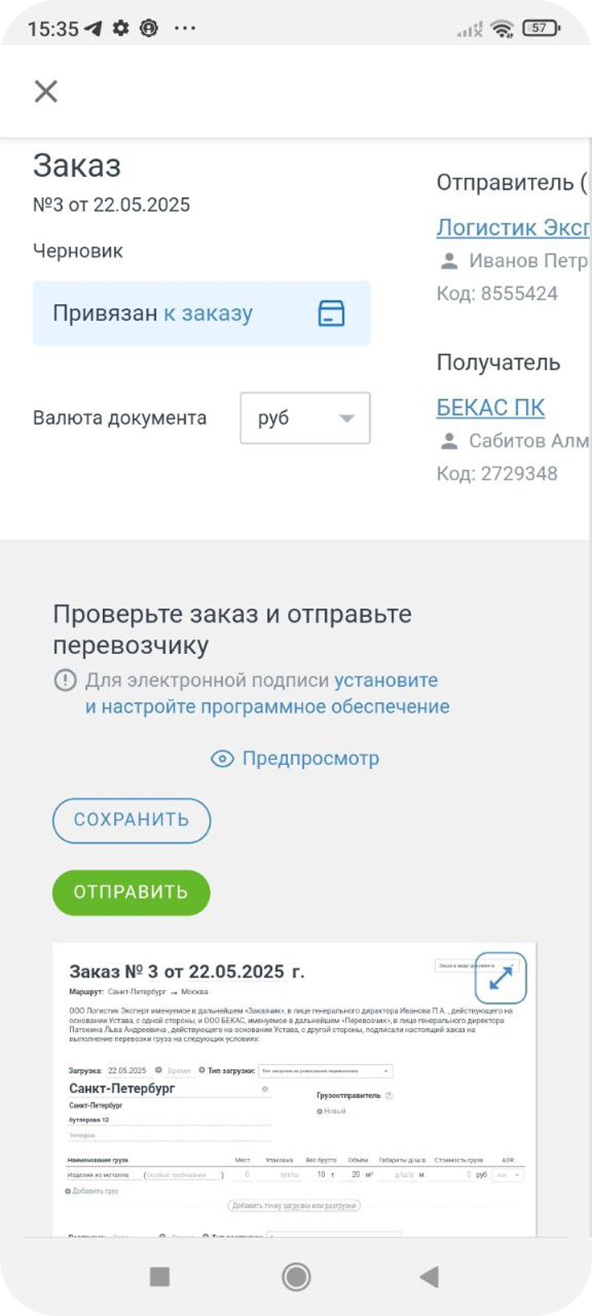 • Оформляйте перевозки и подписывайте документы в несколько кликов. Используйте шаблоны и заполняйте данные в Справочниках, чтобы не тратить время на оформление бумаг вручную. Ещё это поможет избежать ошибок в документах и задержек во время загрузки или разгрузки машин.