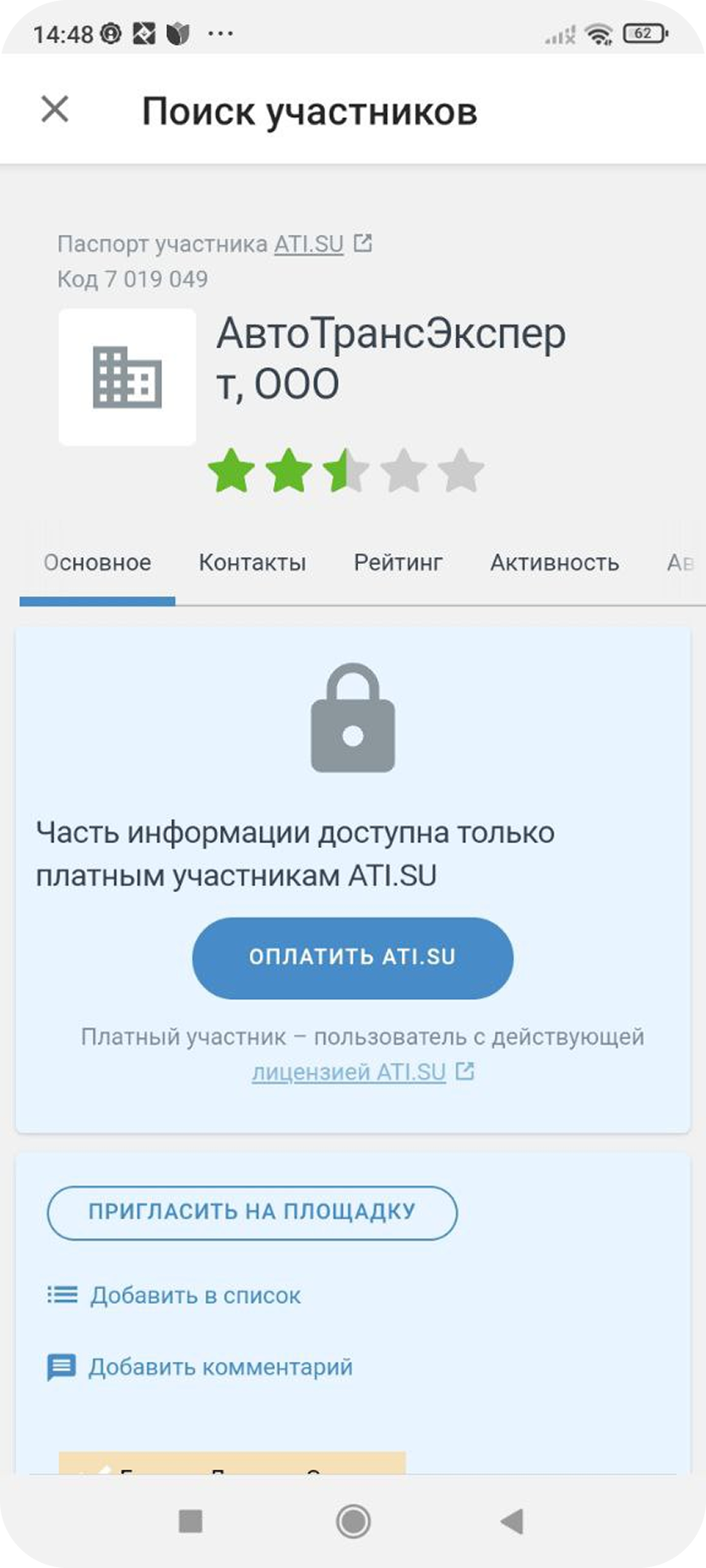 • Работайте с проверенными исполнителями. Вы сами принимаете решение, кого пригласить на площадку. Изучайте информацию о контрагентах и используйте дополнительные сервисы ATI.SU, чтобы принять взвешенное решение о сотрудничестве.